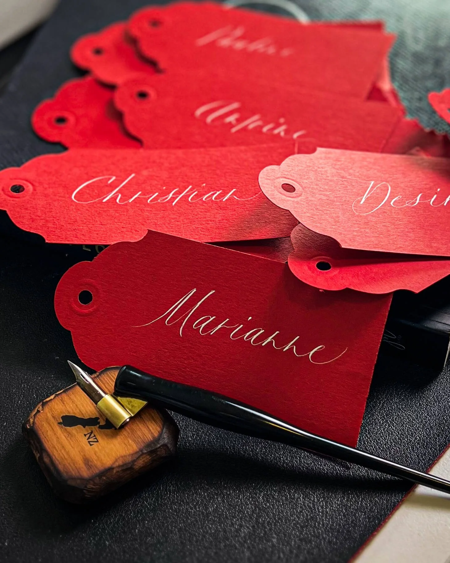 Elevate your event with an unforgettable touch of personalization. Delight your guests as they watch their names or keepsakes come to life through live calligraphy, engraving, hot foiling, or hand-painted art. Each creation becomes a cherished memento — a beautiful way to entertain and leave a lasting impression.